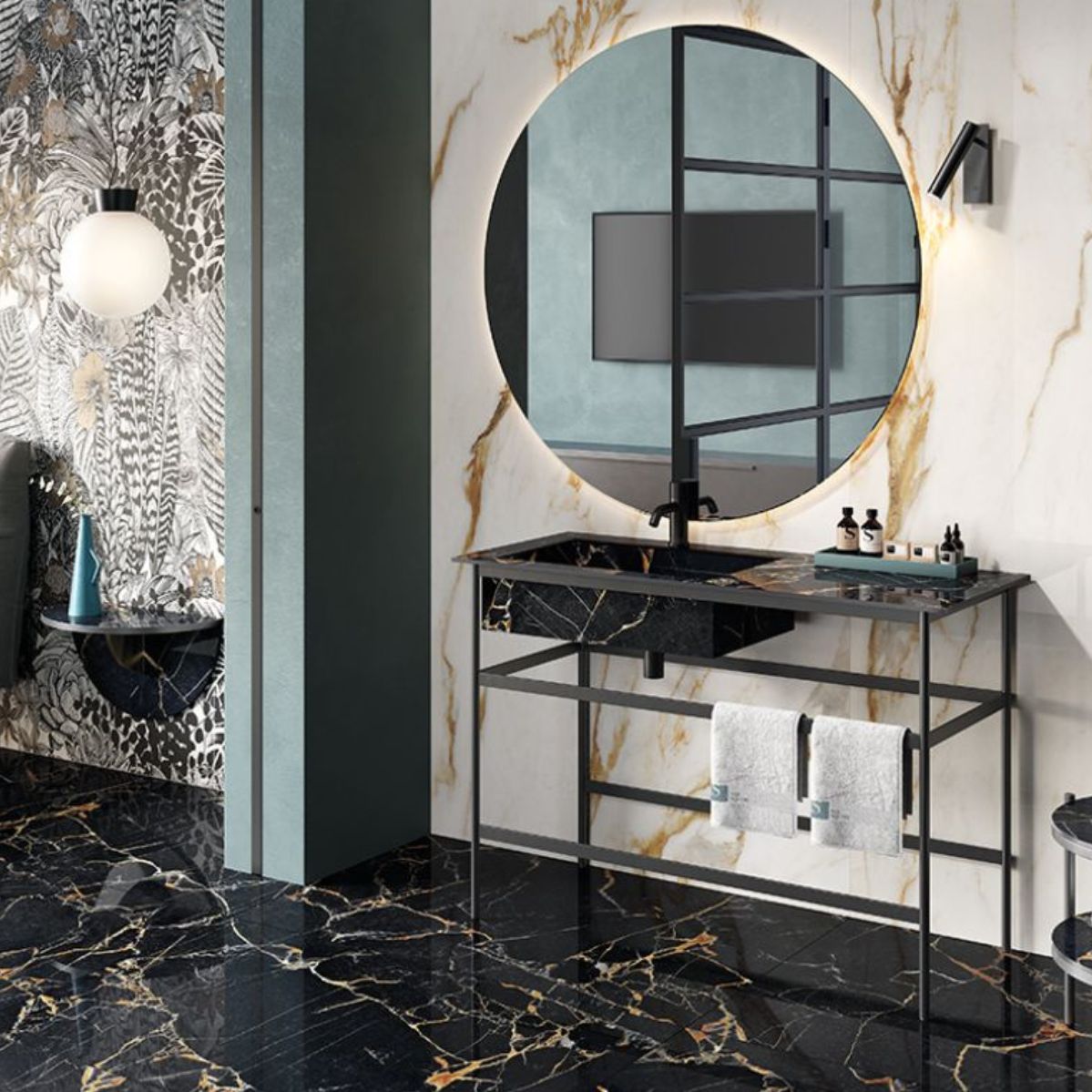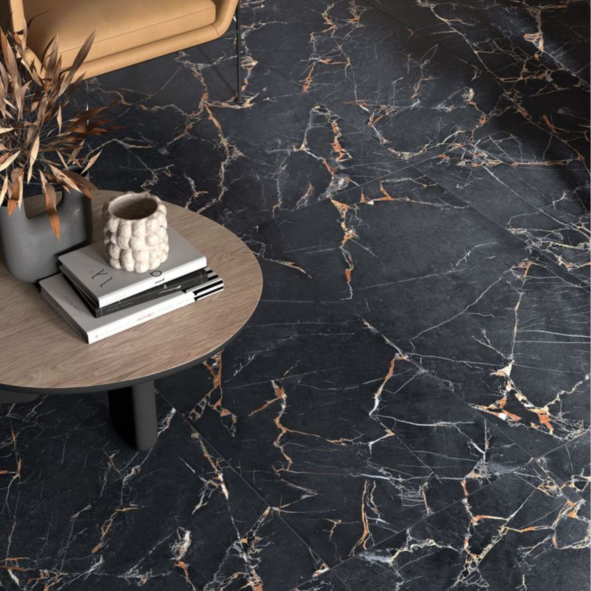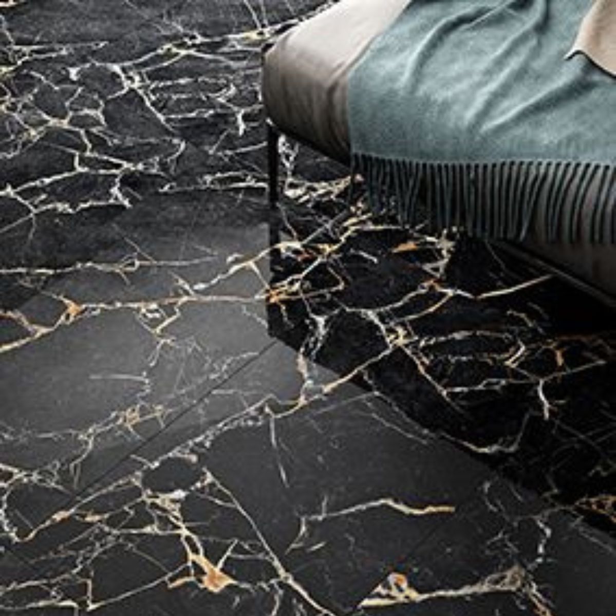 Colecția Sensi Signoria de la ABK nu este doar o simplă gresie, ci o experiență senzorială inspirată de cele mai prețioase varietăți de marmură din lume. Nuanța Port Gold se distinge prin contrastul profund dintre baza întunecată și rețeaua complexă de vene aurii și ocru, creând un design dinamic și plin de caracter.